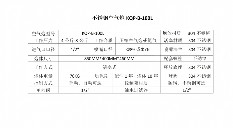一般不銹鋼空氣炮應(yīng)用到面粉倉(cāng)、化工廠、或者外部環(huán)境酸堿度大、或?qū)諝馀趪姵龅臍怏w清潔度要求高的地方。我司設(shè)計(jì)的不銹鋼空氣炮是結(jié)合多年的經(jīng)驗(yàn),從美觀到使用性能有很大的提高。一般不銹鋼空氣炮的型號(hào)是KQP-B-50L、KQP-B-100L、KQP-B-150L。